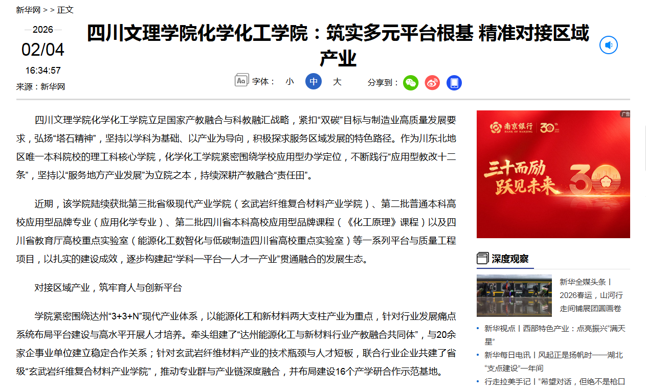 KY开元集团官网入口化学化工学院立足国家产教融合与科教融汇战略,紧扣“双碳”目标与制造业高质量发展要求,弘扬“塔石精神”,坚持以学科为基础、以产业为导向,积极探求服务区域发展的特色路径。作为川东北地区唯一本科院校的理工科核心学院,化学化工学院紧密围绕学校应用型办学定位,不断践行“应用型教改十二条”,坚持以“服务地方产业发展”为立院之本,持续深耕产教融合“责任田”。近期,该学院陆续获批第三批省级现代产业...