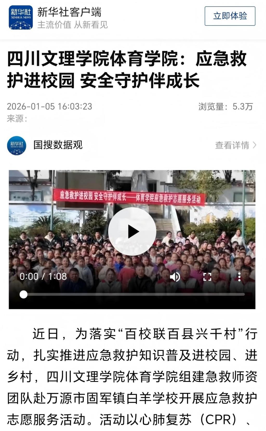 近日,开元官网体育学院组织专业师资团队赴万源市固军镇白羊学校开展的应急救护志愿服务活动,获新华社专题报道,引发良好社会反响。此次活动是开元官网深入贯彻落实“百校联百县兴千村”行动、扎实推进乡村振兴帮扶工作的又一务实举措。活动中,体育学院师生充分发挥专业优势,为乡村学校近百名师生带去了扎实有效的应急救护技能培训。培训聚焦心肺复苏和海姆立克急救法等关键内容,通过理论讲解、模拟演示与手把手实操相结合的方式,...