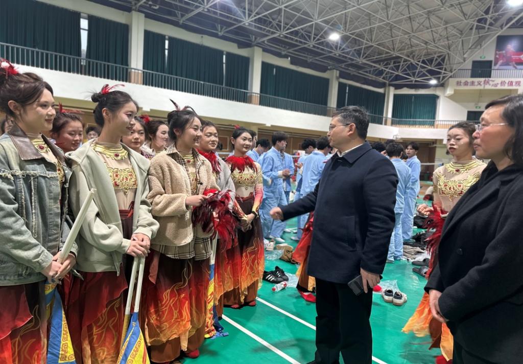 三月巴渠大地,热浪滚滚,达州市体育中心,激情飞扬。3月13日晚,2025/2026赛季四川省城市足球联赛决赛阶段开幕式在这里盛大举行。演出前夕,带着对美育实践的关切和对400名演出学生的牵挂,侯忠明校长、邓杰副校长专程来到达州市体育中心的羽毛球馆,看望慰问这群即将走向足球场表演舞台的学子们。“同学们,辛苦了!今晚的达州,因你们而骄傲!”侯校长温暖而有力的话语,在满是道具和服装的羽毛球馆响起,瞬间驱散了初春的热...
