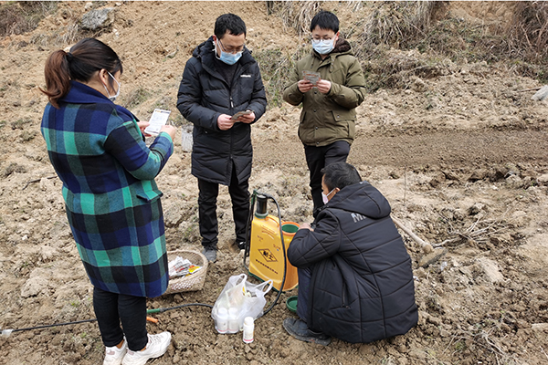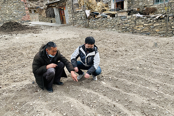 蒲江勇(右一)指导春耕生产