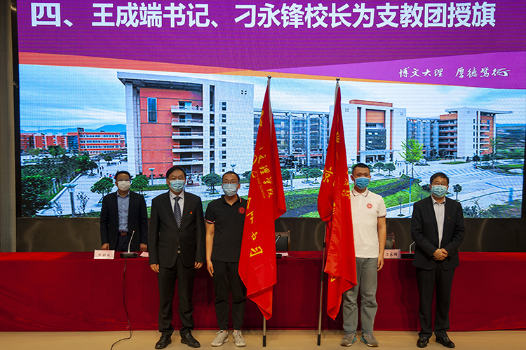 党委书记王成端、校长刁永锋为支教团授旗