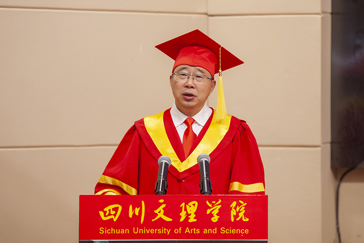 “我发自内心地为你们这些‘后浪’感到骄傲和自豪。正是有了你们,我们的学校才绽放出新活力、呈现出新气象、展现出新风貌。”党委副书记、校长刁永锋枚举了龙登浩、王浪、叶文鑫等优秀毕业生在校期间的突出表现,称赞他们在平淡而不平凡的校园时光中用坚实的行动演绎出最美的青春乐章,记录下最美的毕业记忆,赞扬肖智元等100名同学响应党和国家号召,赴凉山州金阳县顶岗支教,助力金阳县脱贫攻坚,侯美玲等372名文理青年志愿者投身新冠肺炎疫情防控一线,用责任和担当书写最美青春。他殷切希望广大毕业生在更广阔的人生舞台上,继续脚踏实地,乐观坚毅,敢于担当,敢想敢干,敢于追梦,勇做时代的弄潮儿,努力增强适应新形势新任务的能力,不断提升服务社会的本领和才干,与民族共命运、与祖国共奋进、与时代共发展,在实现中国梦的伟大实践中实现自身的人生价值。