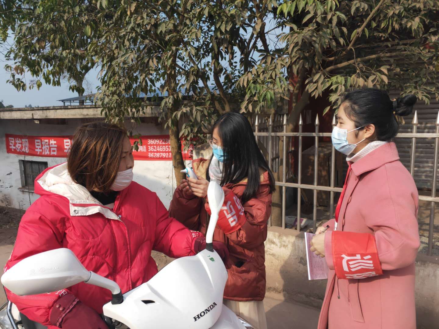 张婧测量过往行人体温