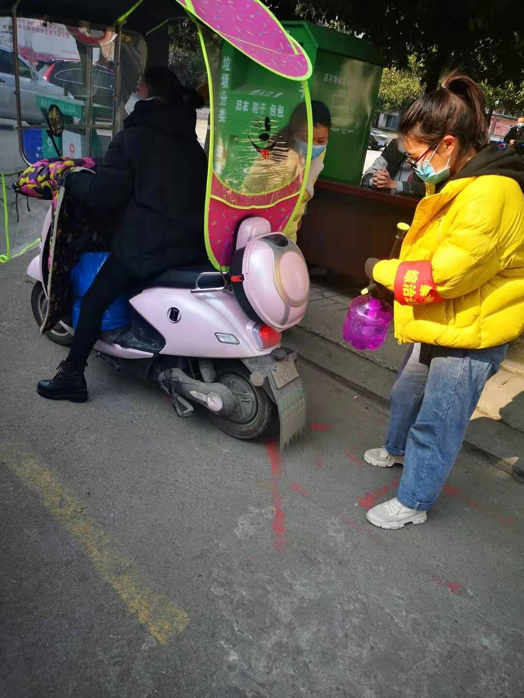 陈玲对过往车辆消毒