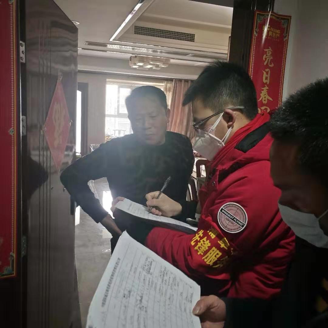 智能制造学院2019级8班学生何云飞参加了成都市龙泉驿区大面街道蒲草村村委成立的“蒲草村先锋服务队”,分配到国际城社区参与志愿服务,主要任务是上门排查登记小区住户信息及从湖北返蓉人员情况,并在当晚将信息汇总报村委会,提醒居民外出戴好口罩,做好个人及家庭成员防护,张贴宣传海报等。他说,自己不懂医术,也没有能力捐出多少钱物,但作为一名大学生,我渴望能做一些力所能及的事情帮助他人,也希望疫情早点结束。