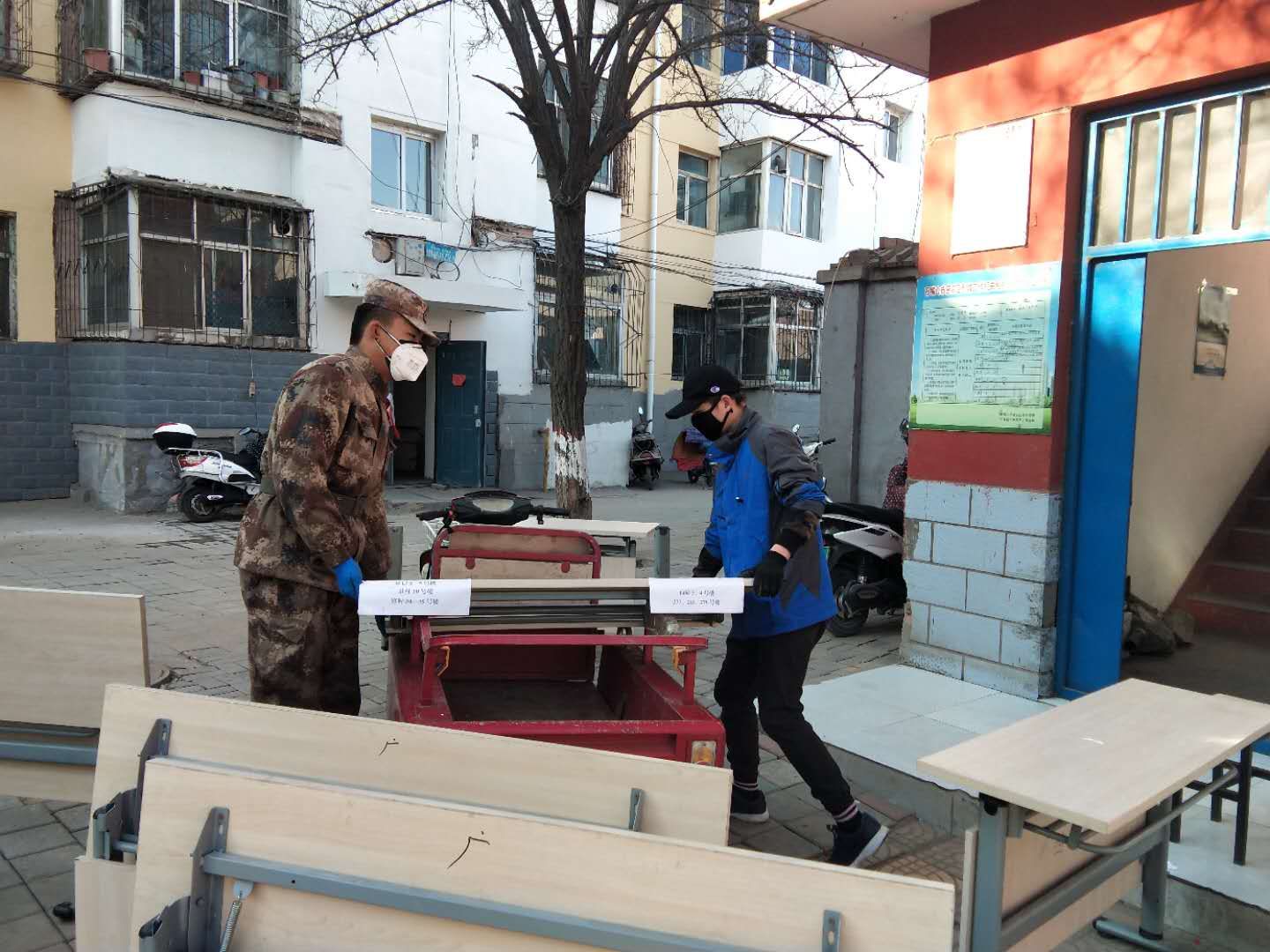 张彪协助搬运物资