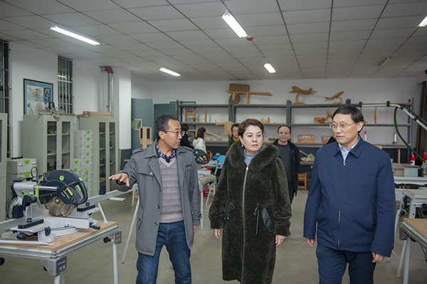 古丽帕丽·阿不都拉考察木工实训室