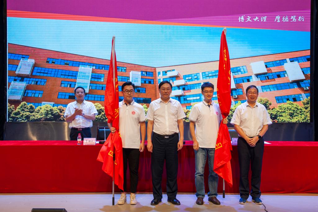 党委书记王成端、党委副书记、校长刁永锋为支教团授旗