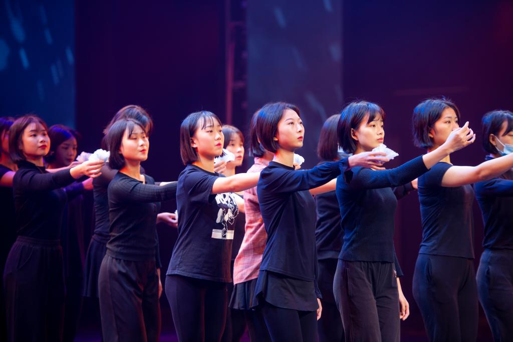 乐山师范学院带来的舞蹈《战火中的青春》,演员们用优美的舞蹈讲述了民国时期一群少年毕业之后,面临各种选择时毫不犹豫脱下长袍,踊跃参军的故事,展现了青年一代不畏艰险的奋斗精神和为祖国繁荣富强奋勇拼搏的奉献精神。