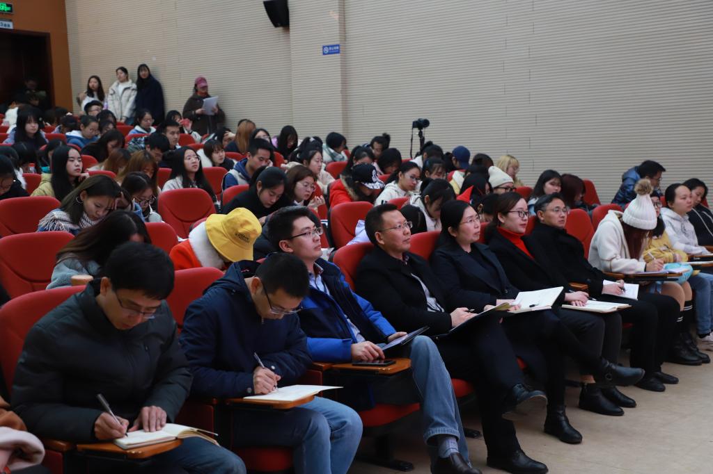 11月23日,党委书记王成端教授在学术报告厅为马克思主义学院、政法学院、文学与传播学院、教师教育学院等学院师生作题为“习近平总书记教育重要论述导学”形势与政策报告。报告会由马克思主义学院、政法学院院长刘长江主持,教务处处长程碧英、文学与传播学院党总支书记李红梅、院长曾宪文以及部分师生参加报告会。