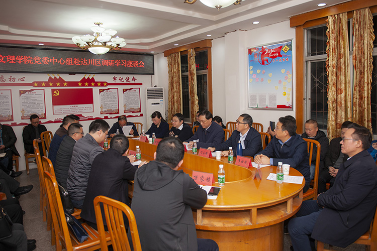 调研结束后,党委中心组成员与达川区委、区政府及区扶贫开发局、区农业农村局、万家镇、麻柳镇等负责同志召开座谈会,就脱贫攻坚和乡村振兴深入交流,探讨校地合作、乡村振兴产业发展实施路径与策略。