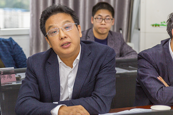 马克思主义学院院长刘长江、党总支书记刘春辉汇报近年来建设发展取得的成绩,查找分析存在的问题,并提出下一步工作打算和改进措施。