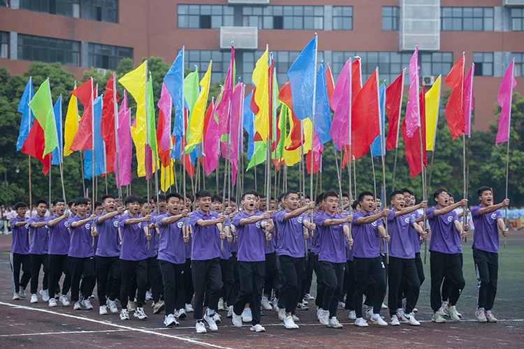 上午8:30,伴随着雄壮激昂的《运动员进行曲》,国旗仪仗队步调整齐、精神昂扬地走过主席台。随后,校旗队、彩旗队、裁判员代表队、各运动员代表队依次入场。他们迈着铿锵有力的步伐,喊着催人奋进的口号,以饱满的精神、挺拔的身姿接受检阅,展示了文理师生的炫丽风采。