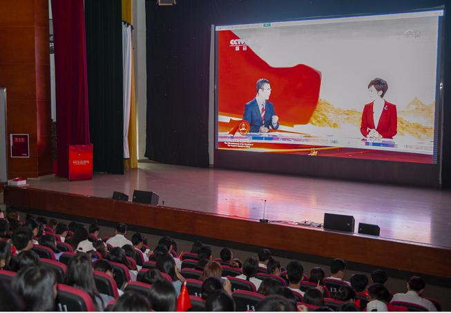 师生在艺术传媒大楼演播厅收看庆典
