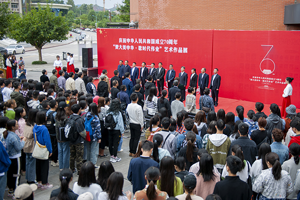 为庆祝中华人民共和国成立70周年,10月17日,学校举行“赞大美中华·歌时代伟业”庆祝新中国成立70周年艺术作品展。党委书记王成端出席开幕式并讲话,党委副书记、校长刁永锋主持开幕式并宣布开幕。