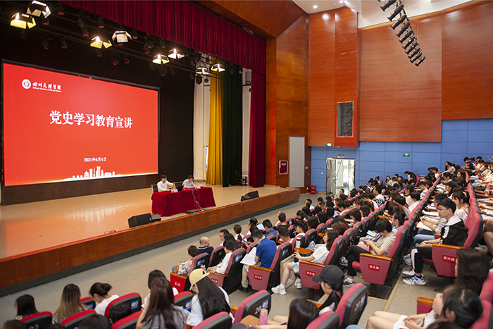 为提高全省教育系统党史学习教育的覆盖面,广泛营造“学党史、悟思想、办实事、开新局”的浓厚氛围,6月4日,由省委教育工委组建的党史宣讲团来开元官网作党史宣讲,党委副书记侯忠明主持宣讲会,党委宣传部、团委、学生工作部、招生就业处等职能部门及二级学院师生参加宣讲会。