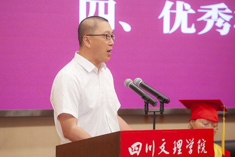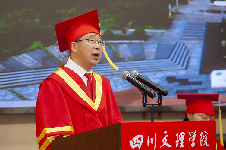 “栀子花开如此可爱,光阴好似流水飞快。”在毕业典礼上,刁永锋与毕业生们一起追忆4年光阴故事,并祝愿毕业生在今后的人生旅途中乘风破浪、砥砺前行,他日重逢,各领风骚。他说,四年来,同学们见证了祖国的日新月异,也见证了学校的蓬勃发展,见证了从千亩校园到成都产教融合基地,从成立川陕革命老区振兴发展研究院到进入中国好大学前500名,从硕士立项建设单位到科研项目成果重大突破,从牵头成立“万达开川渝统筹发展示范区高校联盟”到全国第六届大学生艺术展演荣获最佳成绩等累累硕果。刁永锋寄语毕业生:要做胸怀天下,担当作为,有家国情怀的人。作为一名时代新青年,在传承先辈的社会责任感和担当精神的同时,要把握自己的际遇和机缘,不懈奋斗,勇于担当,敢于作为,为实现中华民族伟大复兴而努力,不负时代,不负梦想。要锤炼品行,锻造品格,做一个有胸襟格局的人。今后无论走上什么样的岗位,从事什么样的工作,都要客观地认识和评价自我;要追求卓越,也要接受平凡,平凡的人知道自己平凡,但依然热爱生活,知道不断进取,不随波逐流,不荒废时光;要紧绷道德这根弦,树立高尚的品德,在奉献集体、成就他人的过程中收获快乐、幸福与成长。要勤于思考,勇于探索,做一个有创新精神的人。要学习先辈在实践中不怕困苦,不断创新的精神,在新的时代机遇面前保持学习热情、探究精神和创新激情,贡献国家,服务社会。要谦虚谨慎,脚踏实地,做一个有强大定力的人。面对诱惑保持清醒理性和强大定力,从容应对挑战;虚心向书本学习,向榜样、向同事学习,增长才干,丰富阅历;不做空想青年,要做实干青年,一步一个脚印走向成功。