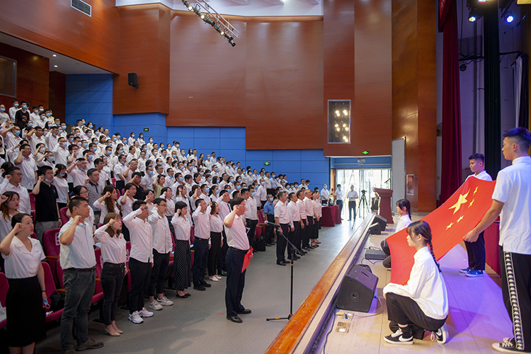 会上,党委书记王成端带领新入职教师宣誓,全体教师重温人民教师誓词。