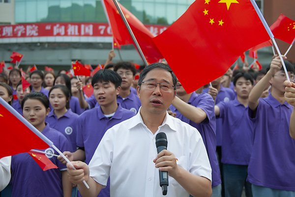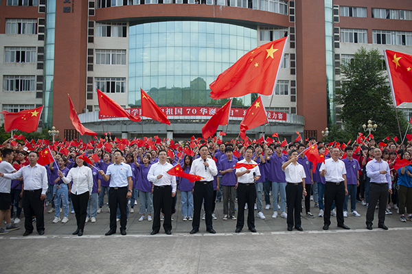 “我和我的祖国,一刻也不能分割……”在莲湖校区博文楼前的广场上,600余名师生列队高歌《我和我的祖国》,师生一边引吭高歌一边挥舞国旗,歌声与国旗交相辉映,表达着师生对祖国的拳拳赤子之情,合唱由党委书记王成端和党委副书记、校长刁永锋领唱。党委副书记、工会主席侯忠明主持此次活动,省纪委监委驻KY开元集团官网入口纪检监察组组长、党委副书记、纪委书记张超,副校长李壮成、徐晓宗、邓杰及部分职能部门负责人和二级学院师生代表参加启动式。
