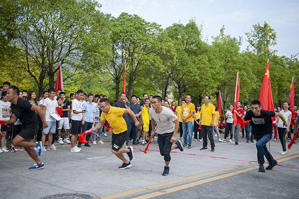 表白结束后,接力赛从博文楼开始,随着裁判员扣响发令枪,由机关4个党总支和文学与传播学院师生组成的第一组率先冲出起跑线,途经图书馆、学府雅苑、弘德楼、艺术传媒楼和体育馆,每个队跑步全程约2公里。