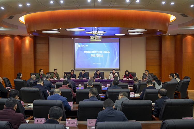 11月25日,学校在莲湖校区召开思想政治教育专业第二级认证专家组见面会。专家组组长、重庆师范大学教务处处长申仁洪教授对现场考查作说明,省教育厅教师工作处一级调研员寇昆仑讲话,党委副书记、校长刁永锋介绍学校师范教育专业整体情况,思想政治教育专业负责人曹红梅作教育教学和人才培养工作汇报,见面会由重庆市教育评估院教师发展评估中心主任黄承国主持。