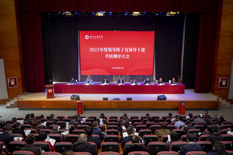 参会人员对校领导班子和领导干部进行民主测评,对学校2021年度选人用人工作和新提任中层干部进行了民主评议。