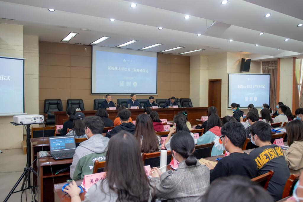 4月19日,新媒体人才培养工程开班仪式暨第一讲在莲湖校区弘德楼举行。党委书记王成端讲话,党委副书记侯忠明主持开班仪式。