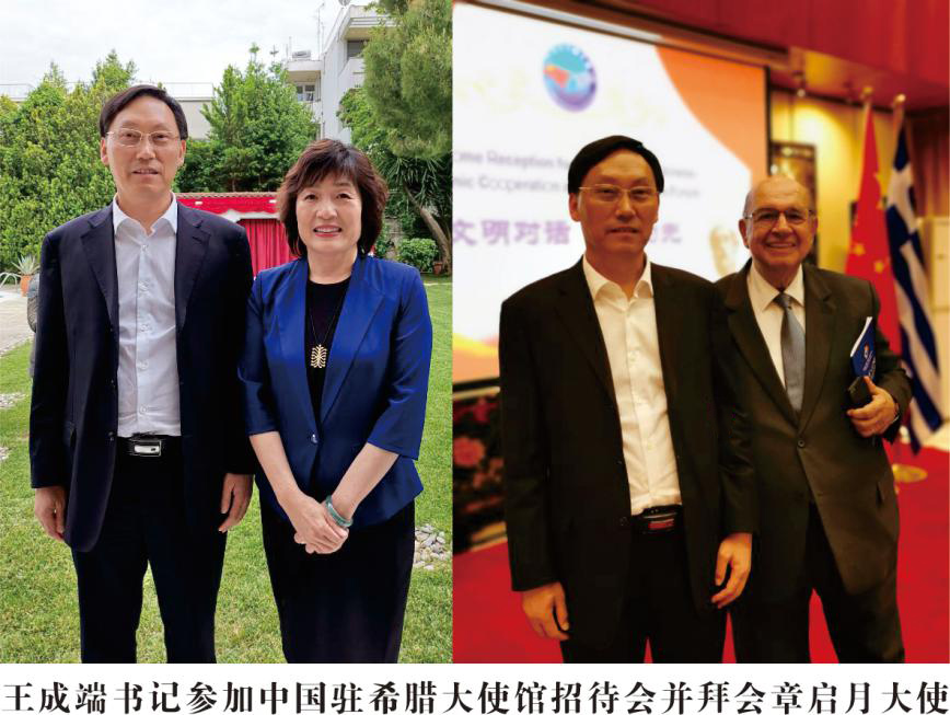 王成端出席中国驻希腊使馆举办的以“文明对话 教育为先”为主题的中国—希腊高等教育论坛招待会。中国驻希腊大使章启月、希腊外交部长卡特鲁加洛斯、国务部长弗拉姆普拉里斯等200余名嘉宾出席招待会。随后,出席中国—希腊大学校长论坛,与希腊雅典大学、雅典国家技术大学等15所希腊高校的校长齐聚一堂,就两国间在高等教育领域的合作发表意见,寻求合作,并围绕教育信息化、教育与创新创业、语言与文化教学、学生流动等四个议题进行交流研讨。