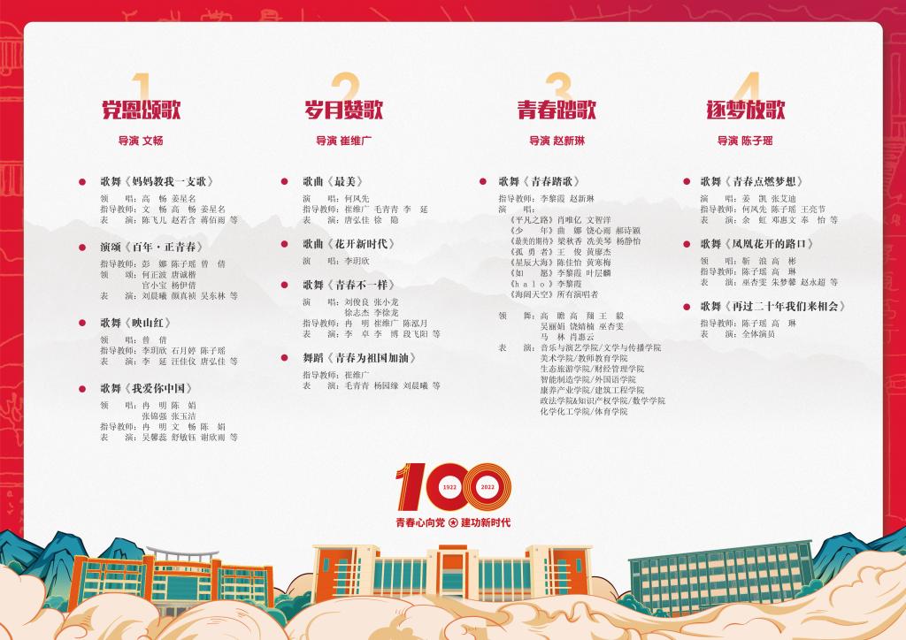 庆祝中国共产主义青年团成立100周年暨KY开元集团官网入口2022年青春歌会将于今晚(5月31日)19:15在莲湖校区田径运动场盛大举行。