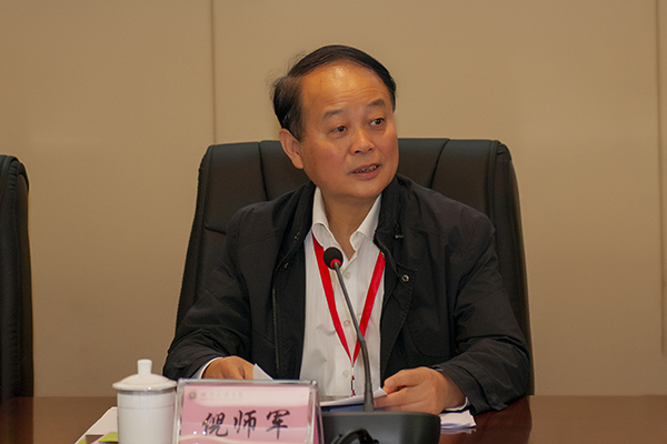 审核评估专家组组长成都理工大学原校长倪师军教授主持会议并讲话