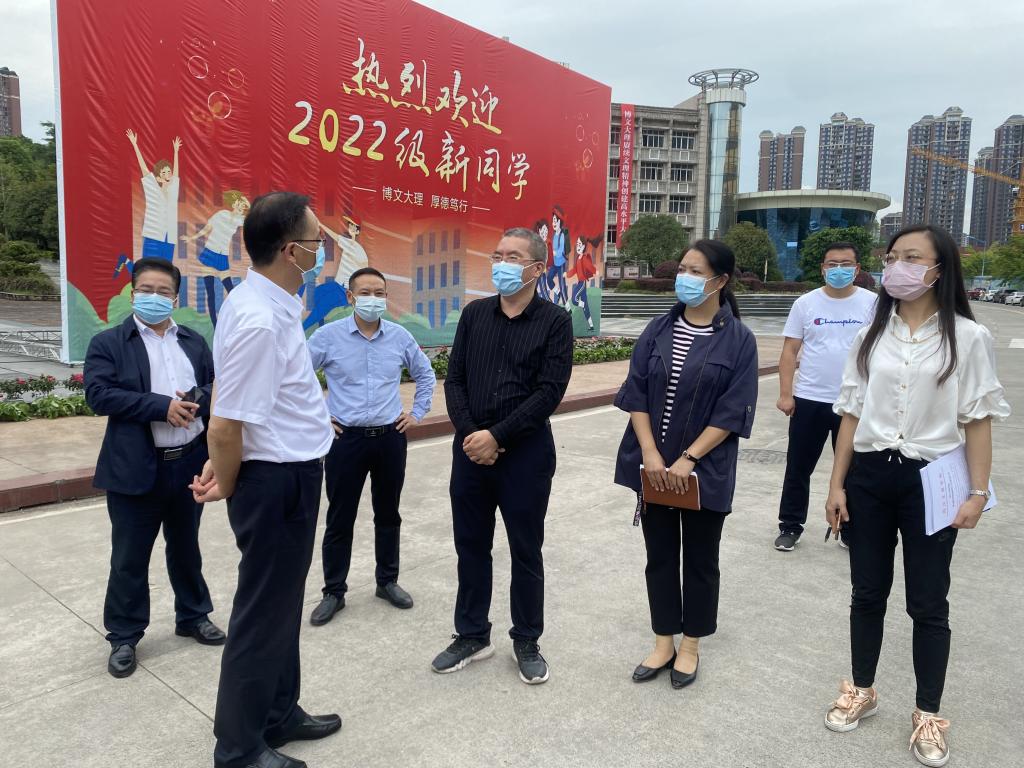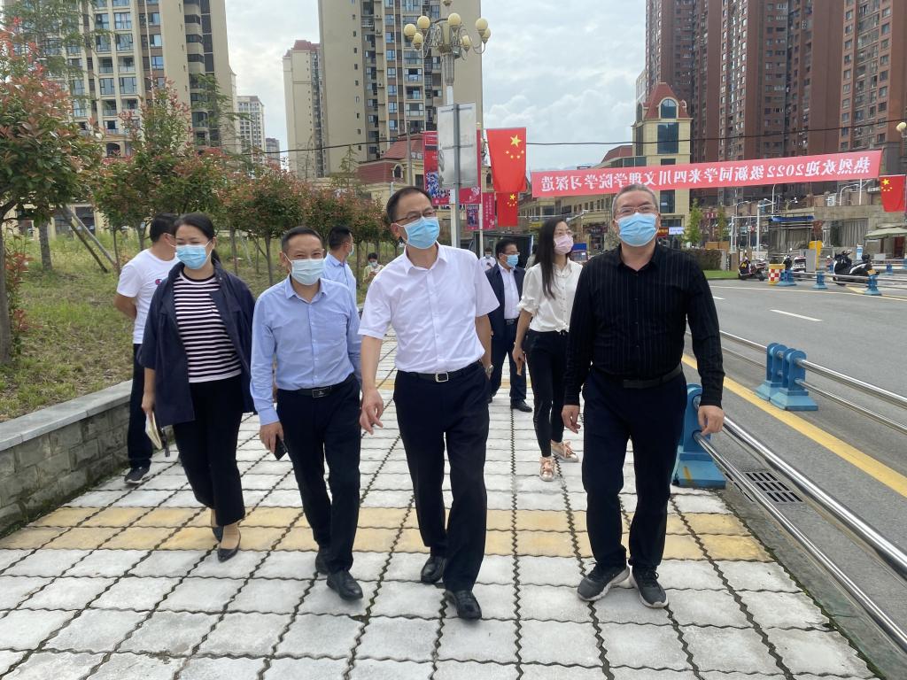 为进一步落实省市疫情防控和开学工作的要求,着力抓好2022年秋季开学工作,9月26日,四川省教育厅二级巡视员杨建国、教育厅党建与干部人才处干部洪婧、教育厅资助中心干部莫笙一行来开元官网检查指导秋季开学及疫情防控工作。市委教育工委专职副书记冯雷,学校副校长徐晓宗、后勤服务处、人事处、学生处、保卫处等相关负责人陪同检查。