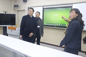王成端一行察看了实验实训室、创新创业培育室、公共机房、基础外语实验教学示范中心等区域,听取了创新创业学院就推动“四年递进式”创新创业教育,“三部合署”育双创人才的详细介绍。