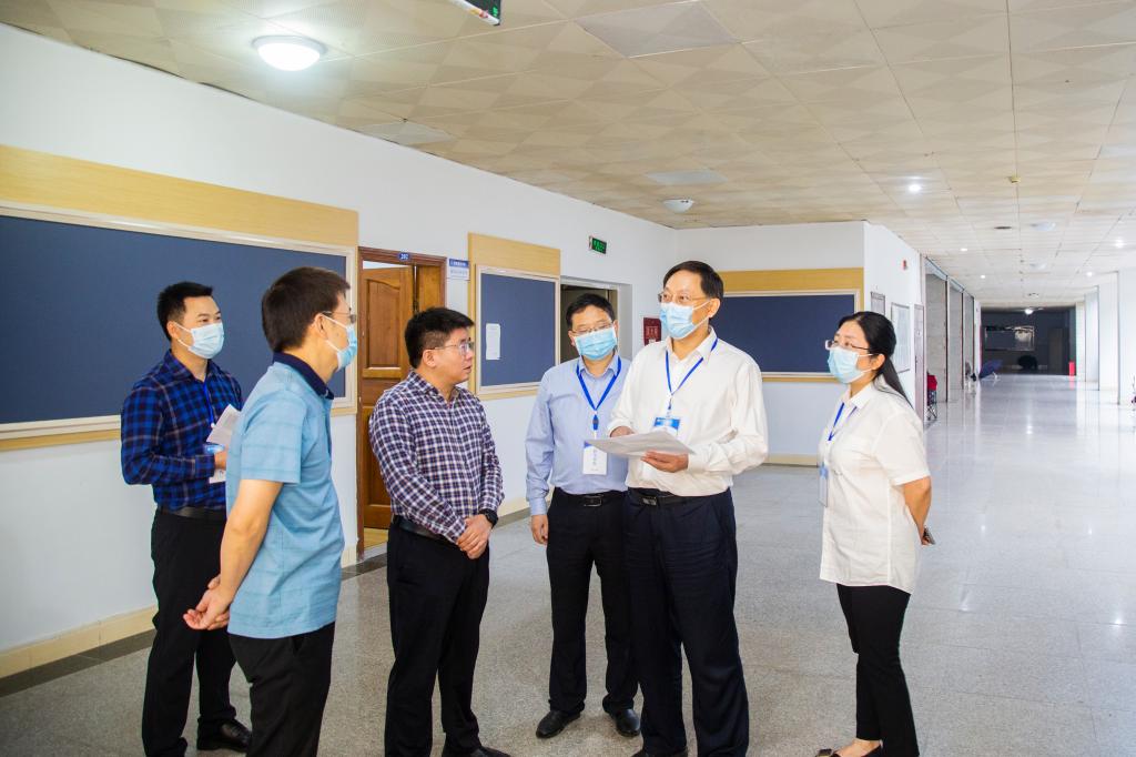 在博文楼、艺术传媒大楼、弘致楼,王成端走进教室,查看师生教学状况,了解线上线下同步教学运行情况,并利用课间与师生亲切交流,倾听他们对教学的意见和建议。
