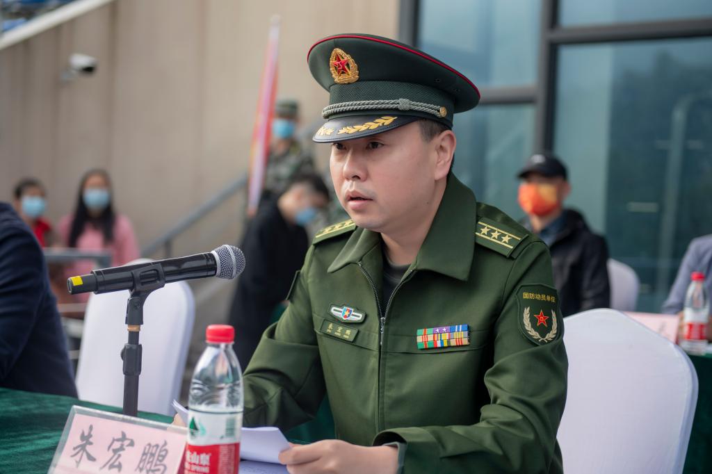 通川区武装部部长朱宏鹏上校宣读军训团任职命令