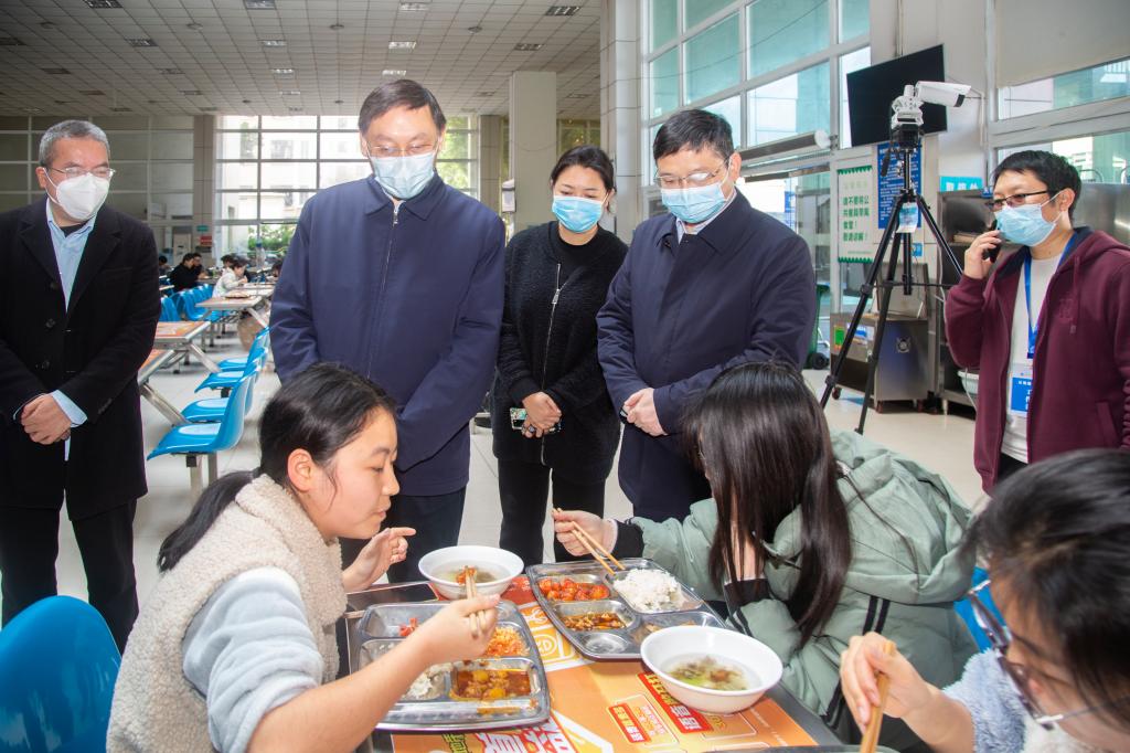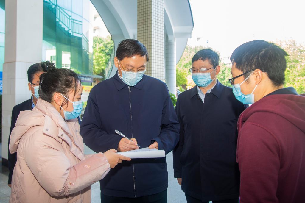 11月26日,党委书记王成端,党委副书记、校长侯忠明带队检查疫情防控和服务保障工作落实情况,现场指导工作。