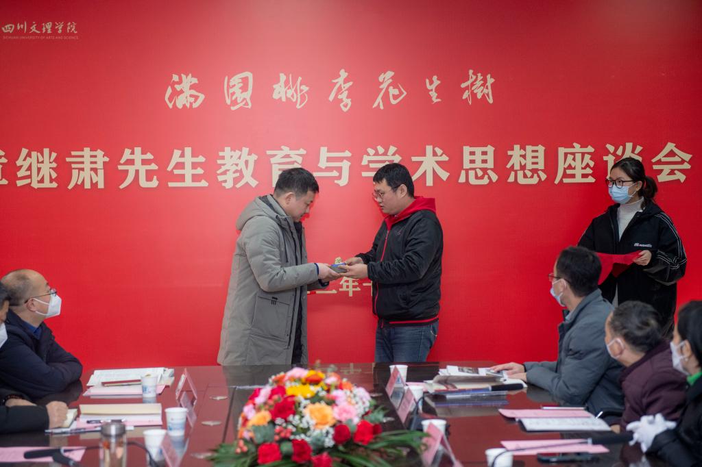 侯忠明在致辞时说,学校46年的办学历程中,涌现了一大批学高为师、身正为范、教书一辈子、美名传天下的大师,章继肃先生就是其中最典型的一位。先生有忠诚的信仰。他一直对党有着坚定的信念,矢志不渝追求入党。他曾说,“共产党员是我一生的追求,是我最高的政治荣誉”。先生有高尚的师德。对真心喜欢书法艺术的青年学生,他都会欣然提笔写之勉励,有求必应、一视同仁、为师为范、谦和俭朴,是一个宁静而纯粹的人。先生有深厚的修养。先生在学术上致力于地方文史研究,治学严谨,整理出版过清初思想大家唐甄《潜书》,点校了明末兵部尚书李长祥的《天问阁文集》;先生还是一位才华横溢的诗人,他的诗文贵真尚短、天然隽永,出版有《小窗诗文稿》《章继肃文集》;先生有精湛的书艺,是中国书法家协会较早一批的会员;先生有优良的家风,他与结发妻子结伴70余年,相濡以沫终身到老。先生还常对子孙和学生讲:“君子爱财,取之有道,用之有方”。先生有教育的情怀。他的一生从未离开过三尺讲台,曾率学生到重庆图书馆清理回来一万余册免费的副本图书,奠定了开元官网图书馆的基础,指导学生成立了星光文学社,培育了一大批后来的巴山作家、诗人、文艺评论人才。侯忠明强调,学校召开座谈会,不仅仅是纪念章继肃先生诞辰100周年,更重要的是总结名师思想,凝练大学精神,尊师重教,弘文立教。学校一定会涌现出更多像章继肃先生一样的好老师,为建成特色鲜明优势突出的高水平应用型大学作出新的更大贡献。