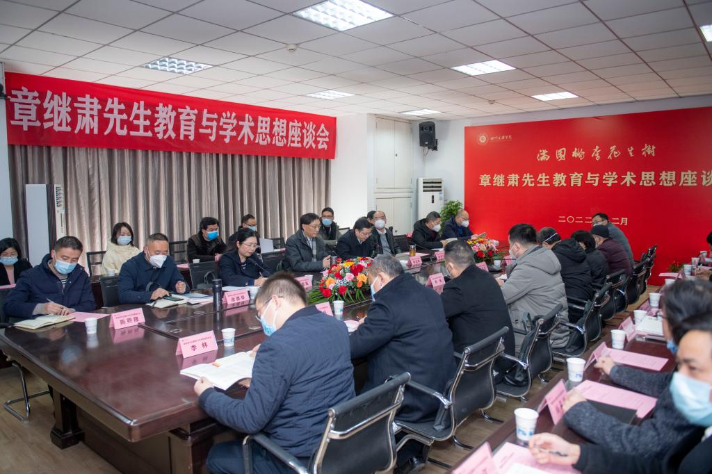 12月21日,学校在艺术传媒大楼召开章继肃先生教育与学术思想座谈会,纪念章继肃先生诞辰100周年,缅怀大师精神,传承学术思想。党委书记王成端教授出席会议并讲话,党委副书记、校长侯忠明教授致辞,副校长程碧英教授主持座谈会。