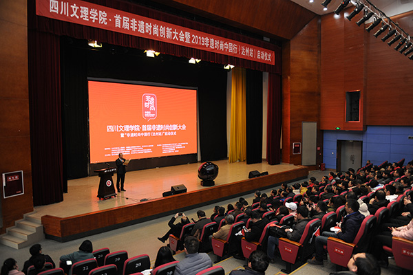 王晖分享了自己通过22年的学习,传承与发展蜀绣所做的探索,提出了非遗时尚化的建议和措施。她现场讲解蜀绣的部分技法和精美绝伦的作品,让在场的观众叹为观止。她将蜀绣运用到不同的载体上,进行创新融合,让观众体验了蜀绣艺术的传统之美。刘承川教授就石桥火龙非遗艺术认为,文化产业要发展,对于文化资源丰富的达州地区来说,必须实施资源驱动战略,达州非遗的视觉元素,超级IP未来一定有很多出自于这些具有地方特色和文化特征的非遗资源宝库。蔡励才在演讲中传达了 “先有文化生态,再有非遗传承”的理念。他表示,“2019非遗时尚中国行”系列活动将把具有代表性的传统非遗文化元素进行提炼,结合当代美学,进行时尚创作设计,打造非遗时尚图案IP,通过聚合各路媒体、时尚明星大咖、公益机构以及各互联网平台,整合资源和力量,把非遗时尚IP化,实现非遗的创造性转化及创新性发展。许建斌表达了新一代青年群体对中国传统文化传承和发展的坚定态度和责任担当,同时向开元官网师生发出星青年校园创客召集令,号召青年师生加入非遗时尚创客行列,用更时尚的手段助推中国非遗时尚复兴。