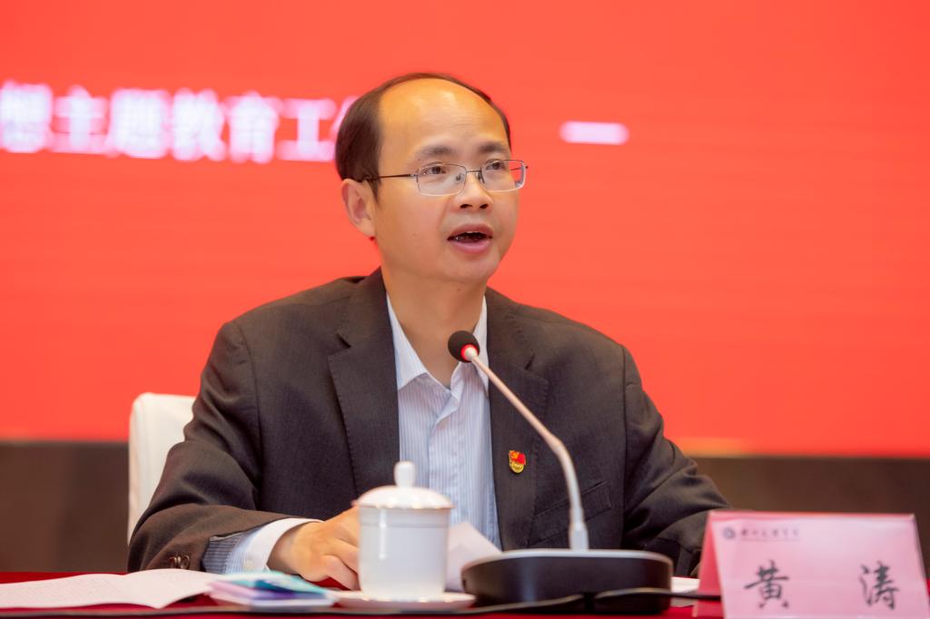 黄涛强调,全校要加强系统谋划,把理论学习、调查研究、推动发展、检视整改和建章立制贯通起来,确保主题教育取得预期效果。在理论学习方面,各级领导干部要认真读原著学原文悟原理,创新学习方式与载体,营造全方位、广覆盖、高频率的学习氛围。在调查研究方面,要按照党中央和省委关于大兴调查研究的部署要求,把调研成果转化为解决问题、改进工作、促进发展的实际举措。在推动发展方面,要以高质量发展新成效检验主题教育成果,找准推动内涵式高质量发展的切入点、发力点,切实做到守根本、育新人,抓重点、促发展,办实事、解民忧。在检视整改方面,要把问题整改贯穿主题教育始终,对标对表找问题、列清单、深分析,对查摆出的问题,逐项制定整改措施,立行立改。在建章立制方面,要对主题教育中的好做法好经验,及时建章立制,建立起巩固主题教育成果的长效机制,健全学习贯彻党的创新理论的制度机制,确保常态长效。