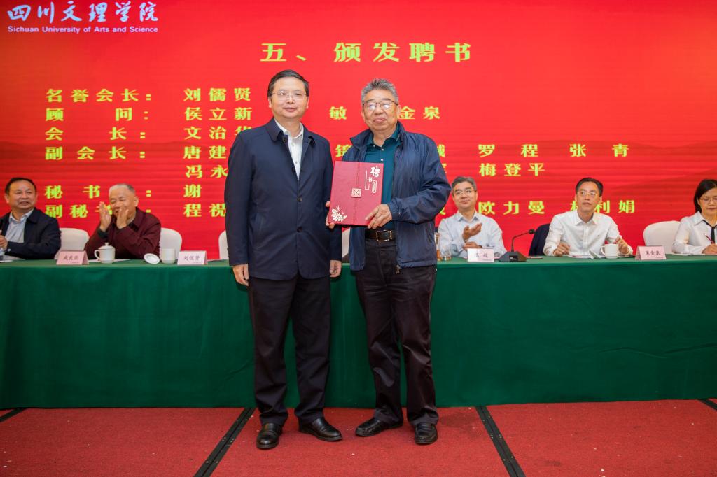 筹备组代表中文系1985级校友谢诚介绍了广安校友会筹备情况,中文系1984级校友谢文锦宣读了《广安校友会章程》并提请与会校友代表审议、通过。学校领导为受聘校友颁发聘书。