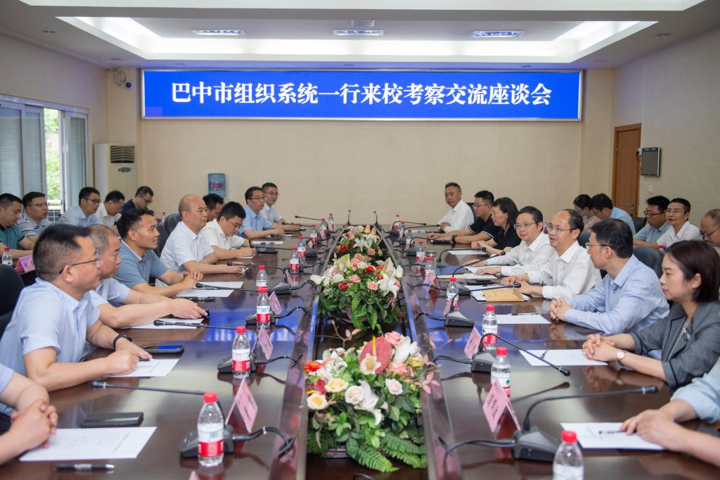 4月21日,巴中市委常委、组织部长熊文琦带领全市组织系统来校考察交流,党委书记黄涛介绍学校人才工作和未来发展规划,校长侯忠明主持座谈会并介绍学校办学情况,双方就开展校地合作交换了意见。达州市委常委、秘书长、政法委书记孙骏陪同。