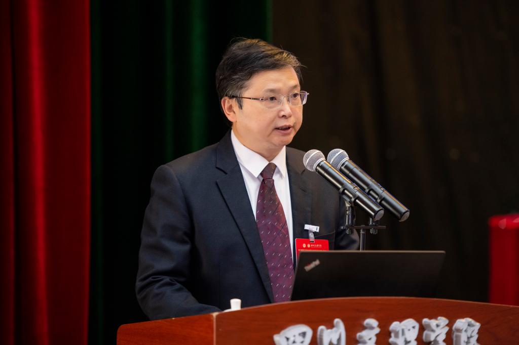 侯忠明向大会作《抢抓机遇,凝心聚力,全力推动学校事业高质量发展》工作报告。报告回顾了学校2022年工作,分析了学校当前面临的发展形势,对2023年工作作出部署。