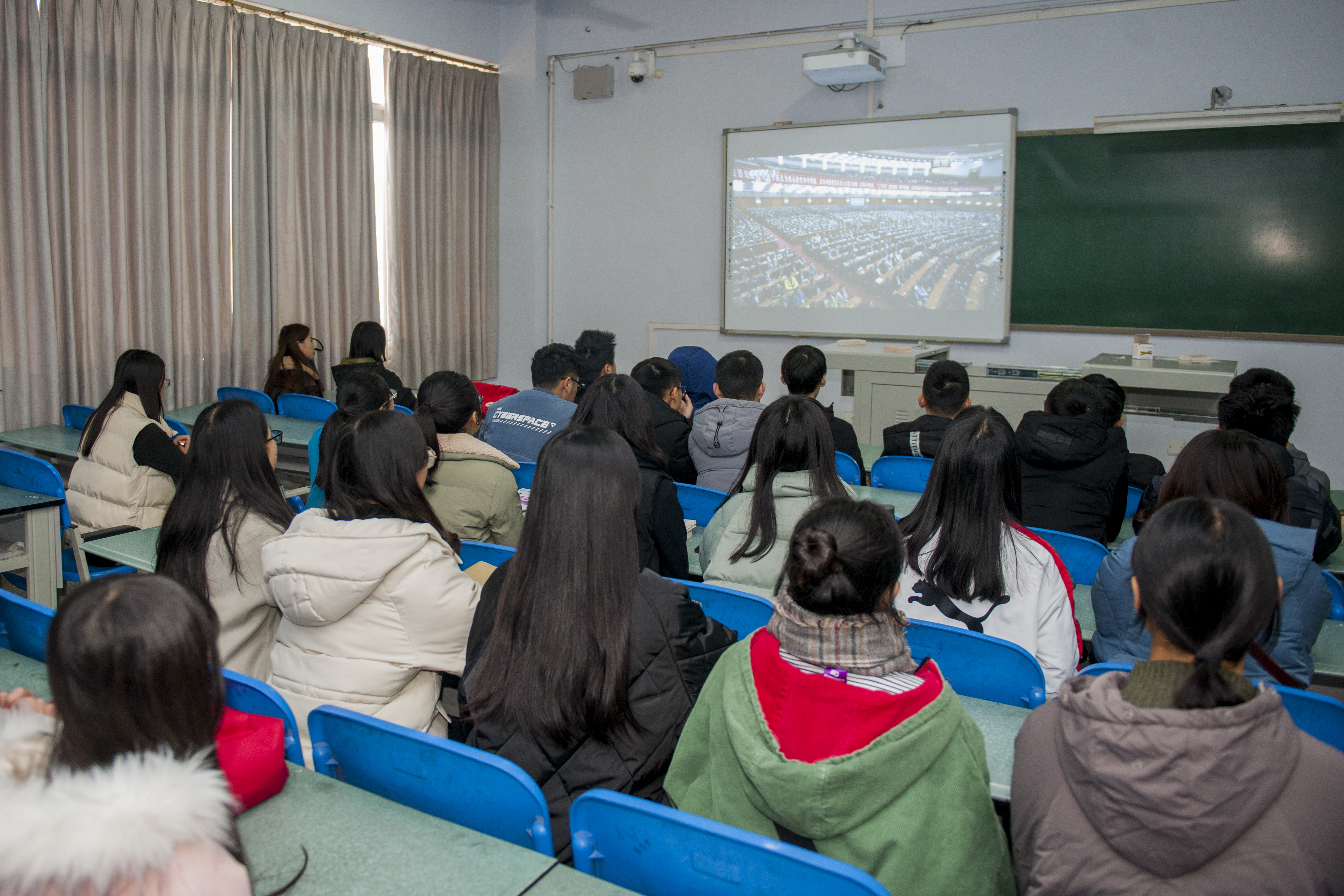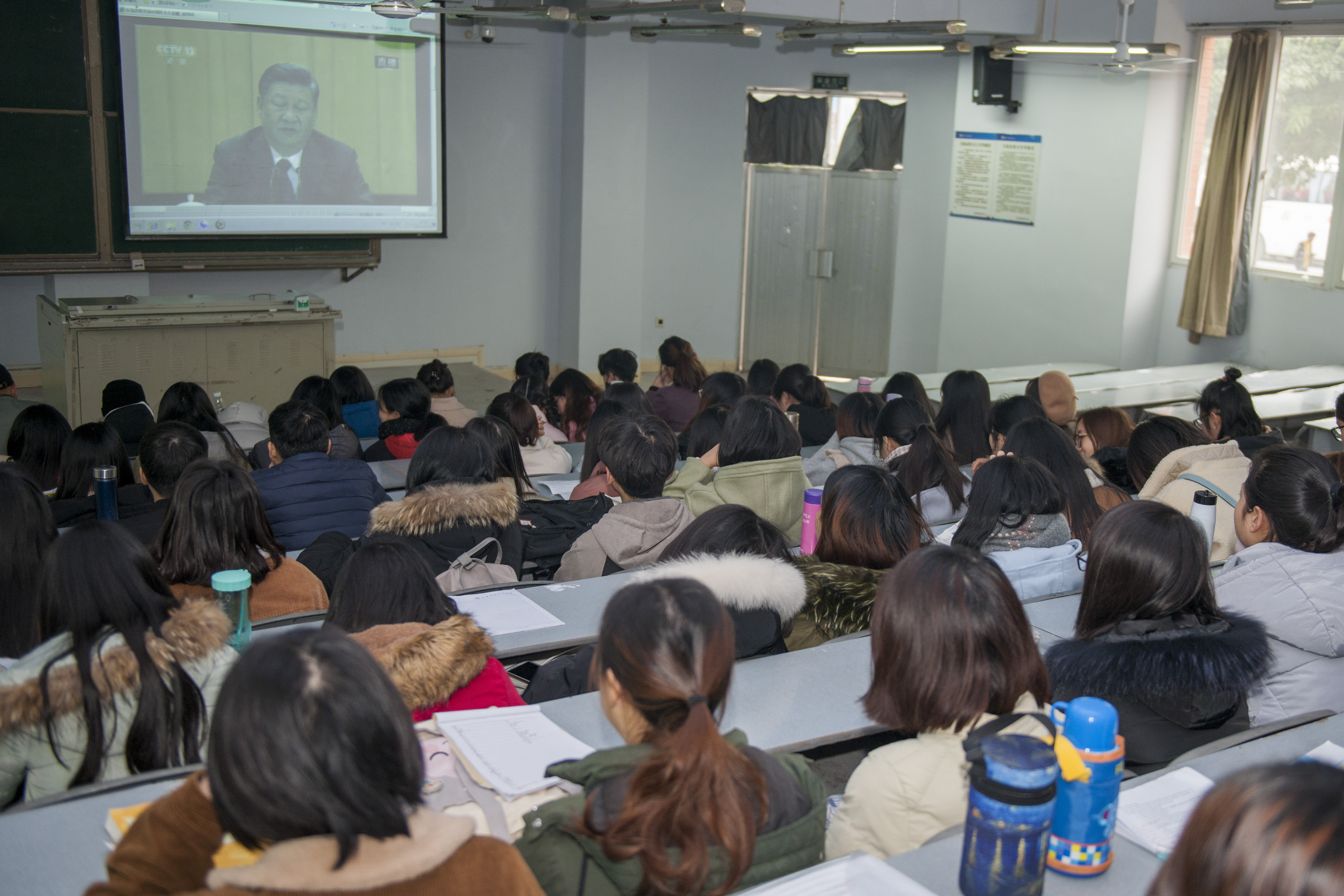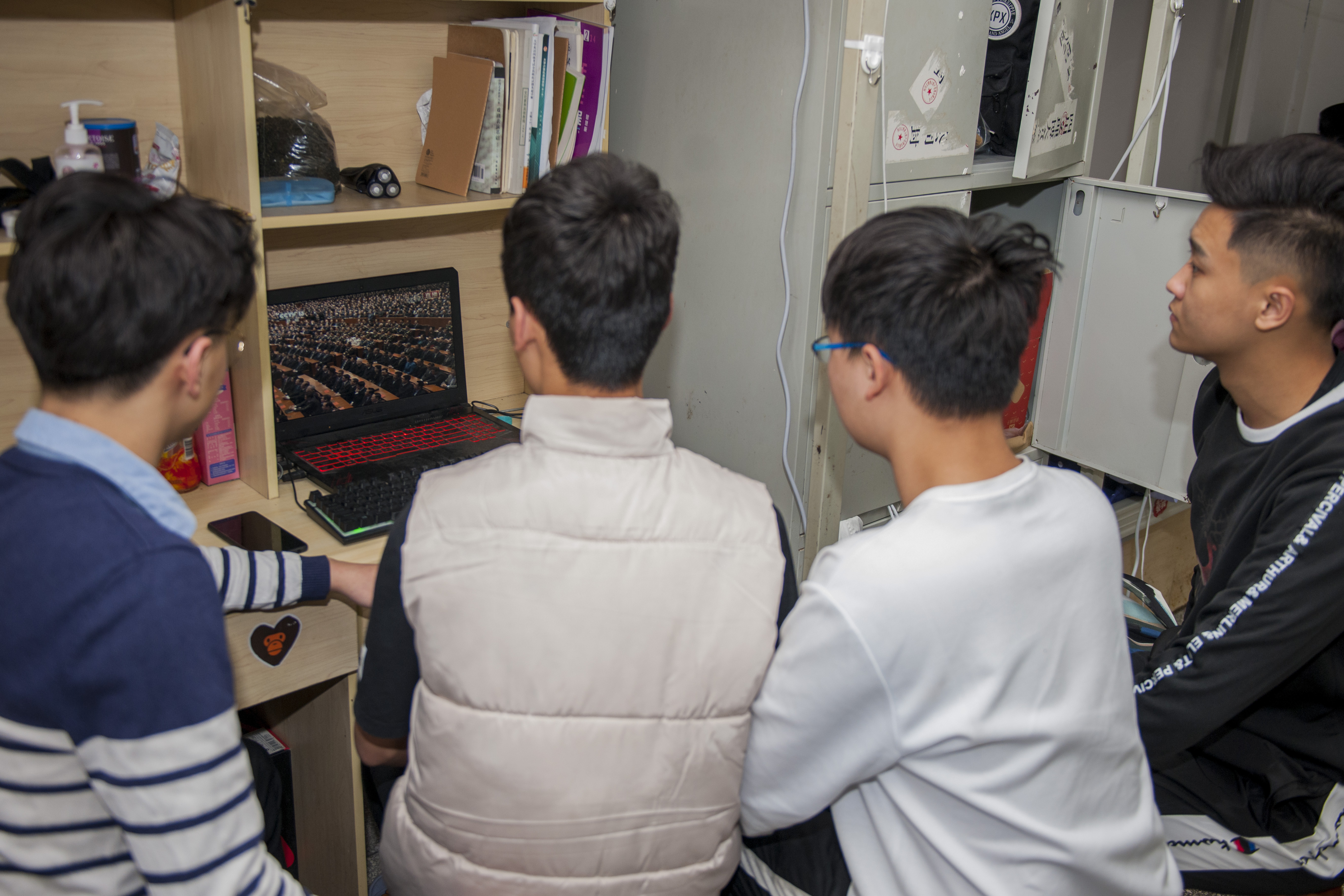 学生在寝室收看“庆祝改革开放40周年大会”