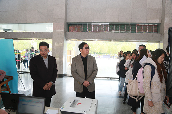 为顺利完成2019年研究生招生考试考点现场确认工作,学校进行了周密部署和精心组织。学校通过研招网和官方网站公告了考生现场确认流程和有关提示,提前做好水电网络保障,聘请安保人员维持现场秩序,安排青年志愿者现场服务,并设置专用咨询电话回答考生各类问题。现场确认分四组同时联网联机开展工作,场地内设置醒目提示和流程图,各确认程序紧密相连、环环相扣,大大缩短考生排队等候时间。