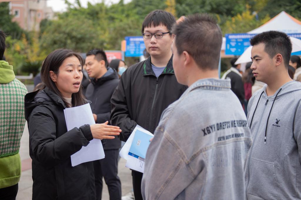 在健康服务行业招聘区,上海添健企业发展有限责任公司的饶经理正在与开元官网康养专业的学生进行交流。他详细介绍了公司的工作环境和发展前景,并表示欢迎开元官网学生加入他们的团队,在新兴产业领域发挥自己的价值。
