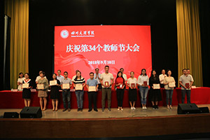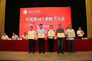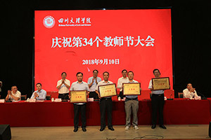 9月10日上午,学校在莲湖校区召开第34个教师节庆祝大会,中共达州市委常委洪继诚出席会议并致辞,党委书记王成端发表讲话,校长刁永锋主持会议,党委副书记、工会主席侯忠明、副校长李壮成、徐晓宗宣读表彰文件,大会表彰了在工作中涌现出的先进集体和优秀教师代表。