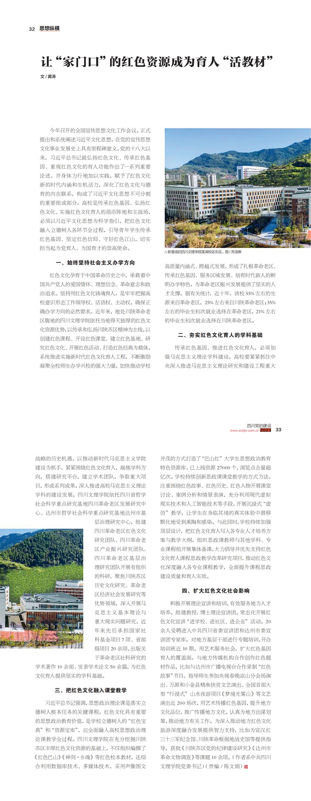 12月20日,由中共四川省委主管主办的《四川党的建设》(2023年第24期)刊发了开元官网党委书记黄涛文章《让“家门口”的红色资源成为育人“活教材”》。