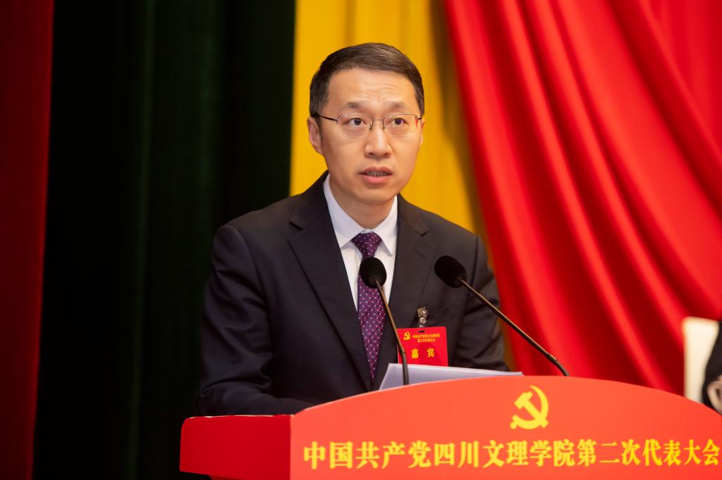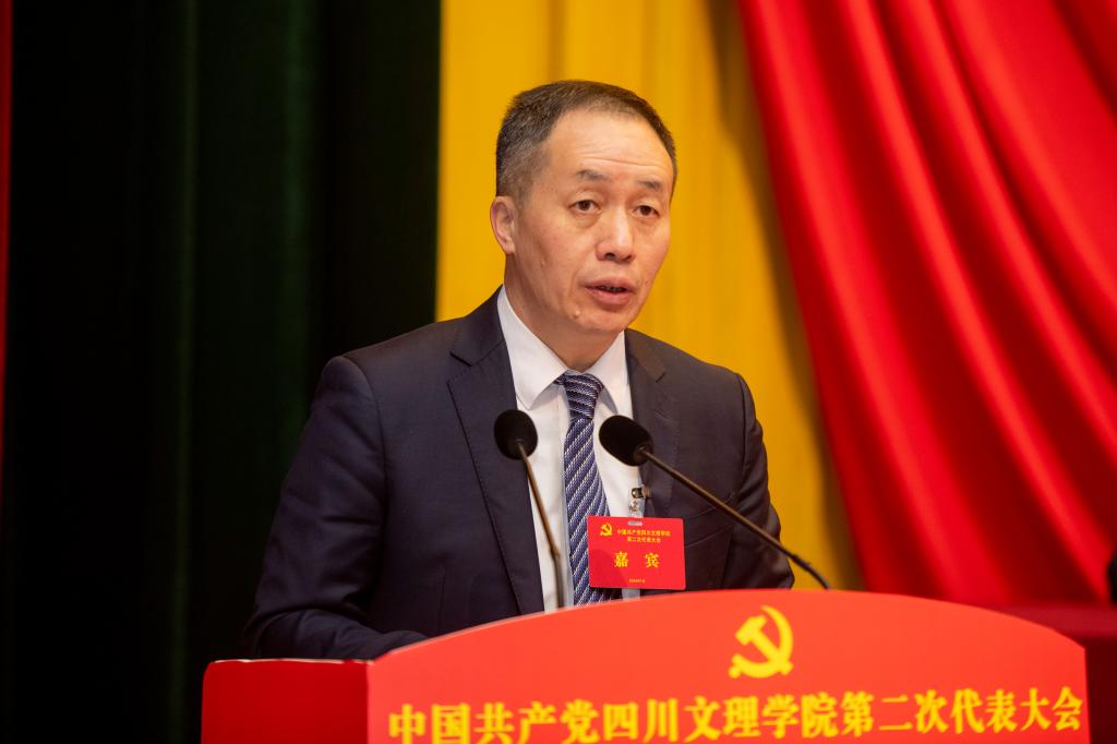 刘照龙代表省委组织部对大会召开表示热烈祝贺,对学校近年来取得的发展成就、作出的积极贡献给予充分肯定,向各位代表以及为学校建设发展付出辛勤努力的广大师生员工致以崇高的敬意。他希望学校认真落实新时代党的建设总要求,始终坚持社会主义办学方向,坚决用习近平新时代中国特色社会主义思想指导实践,把党的领导贯穿到办学治校全过程、各方面;坚持用党的创新理论凝心铸魂,总结好、巩固好、运用好学习贯彻习近平新时代中国特色社会主义思想主题教育成果,切实把主题教育成果转化为推动学校高质量发展实实在在的成效;要主动融入国家成渝地区双城经济圈建设和省委“四化同步、城乡融合,五区共兴”重大战略,积极对接、参与万达开地区统筹发展和四川“5+1”工业体系发展需要,统筹推进学科布局调整,大力开展有组织的科研,为全面建设社会主义现代化四川作出应有的贡献。