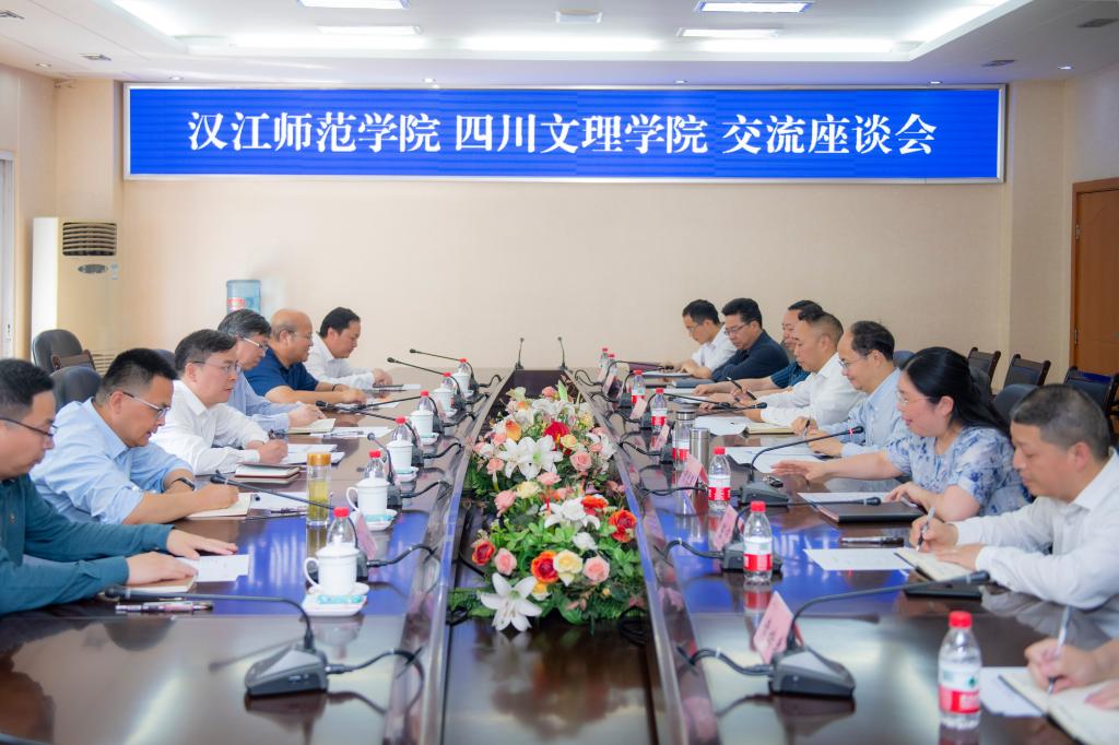 5月7日,汉江师范学院党委书记付永昌一行来校调研交流,双方在弘德楼会议室召开座谈会。汉江师范学院党委常委、副校长陈俊,开元官网党委书记黄涛、党委常委、副校长程碧英,以及双方相关职能部门负责人出席会议。交流座谈会由程碧英主持。