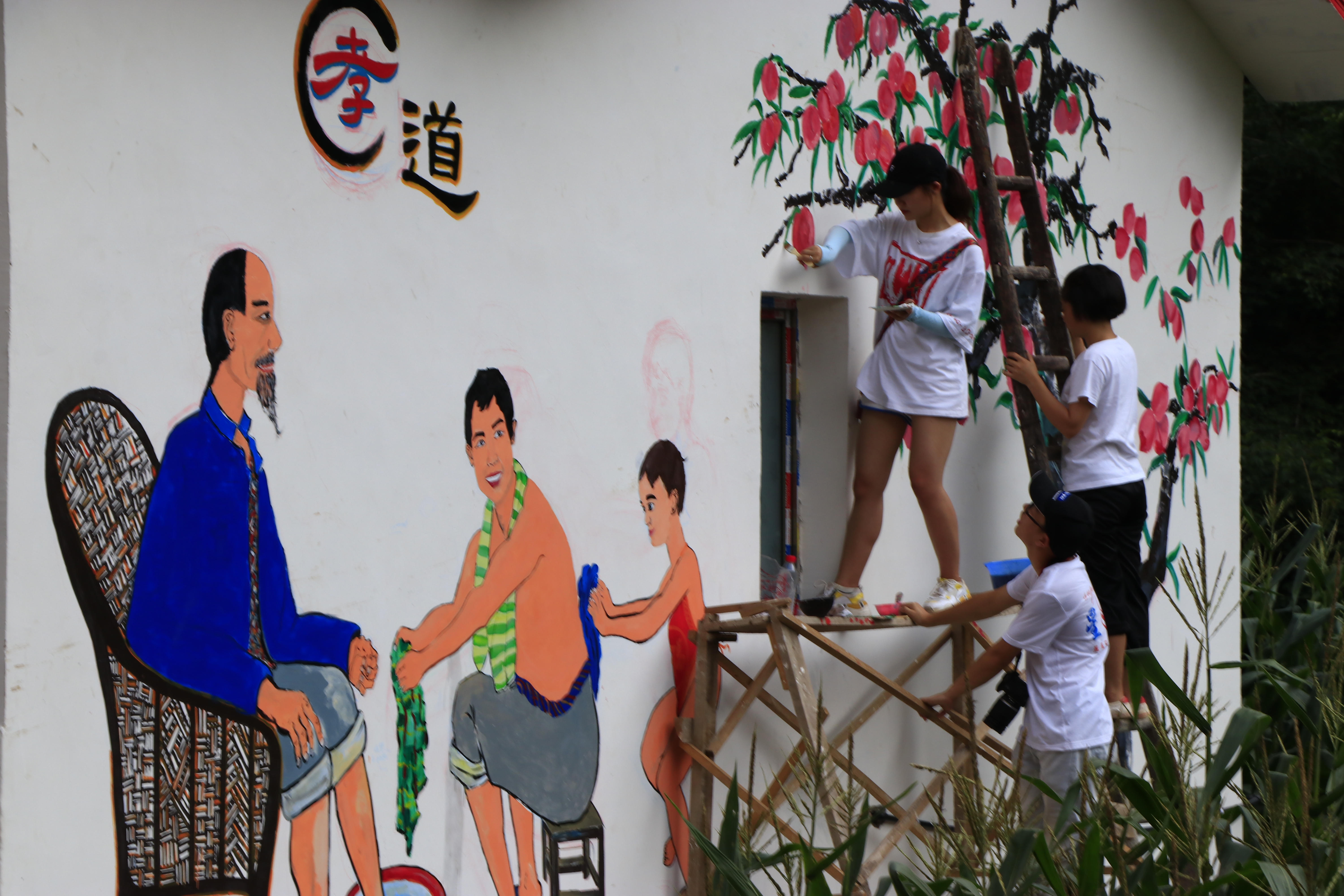 7月16日,早晨天微亮,美术学院志愿服务团的志愿者们已到达各自的工作地点,他们精神饱满,热情高涨的开始一天的工作:对万源市柏树坝村村民墙体约2000平米进行文化上墙,村级美化。柏树坝村是四川省省级贫困村,是开元官网第一个定点帮扶贫困村。作为高校,作为当代大学生,投身“精准扶贫”工作责无旁贷。